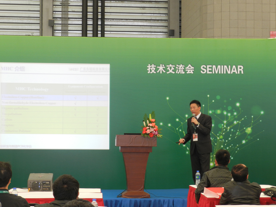 在本届CPCA Show的技术论坛中,来自千亿球友会科技的刘彬云先生就为现场观众带来了《SOC+VCP 孔导通化工艺技术介绍》的分享报告,并与观众共同探讨相关技术问题,得到了热烈的反馈。