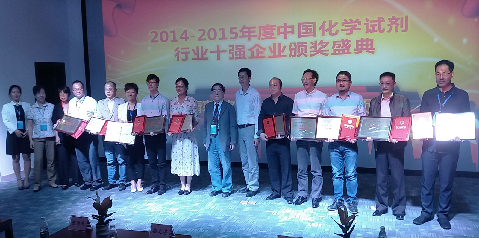 作为《化学试剂》期刊的企业编委,千亿球友会科技一同参与了本次交流会议,就会议相关内容与参会各方进行深入的研讨。在会议过程中,先是由主办及协办各方嘉宾致辞。紧接着大会进入了2014-2015年度中国化学试剂的十强企业的发布和颁奖环节。在正式发布当选企业名单之前,大会特别指出,本次评定的十强企业都是在产品品种数量及市场表现、企业创新能力和可持续发展能力、企业年度销售额和近两年效益增长率等方面综合实力排名行业前茅的佼佼者。随后,会议一一发布当选企业名单,其中千亿球友会科技凭借较强的综合实力荣誉当选。