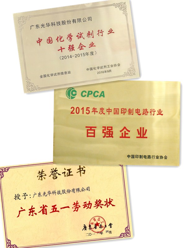 30多年来,千亿球友会科技一直专注于“高性能电子化学品”和“高质量化学试剂”为主导的专用化学品产业领域,在PCB行业及化学试剂行业获得了社会的普遍认可: ● 再次荣获“中国PCB专用化学品第1名” ● 再次荣获“化学试剂行业十强企业” ● 氧化铜、硫酸镍产品被评为“广东省名牌产品” ● 被评为“广东省创新型企业” ● 被评为“国家知识产权优势企业” ● 获颁“广东省五一劳动奖状” |