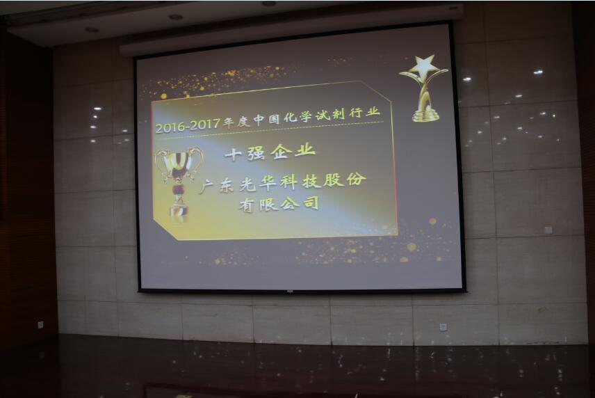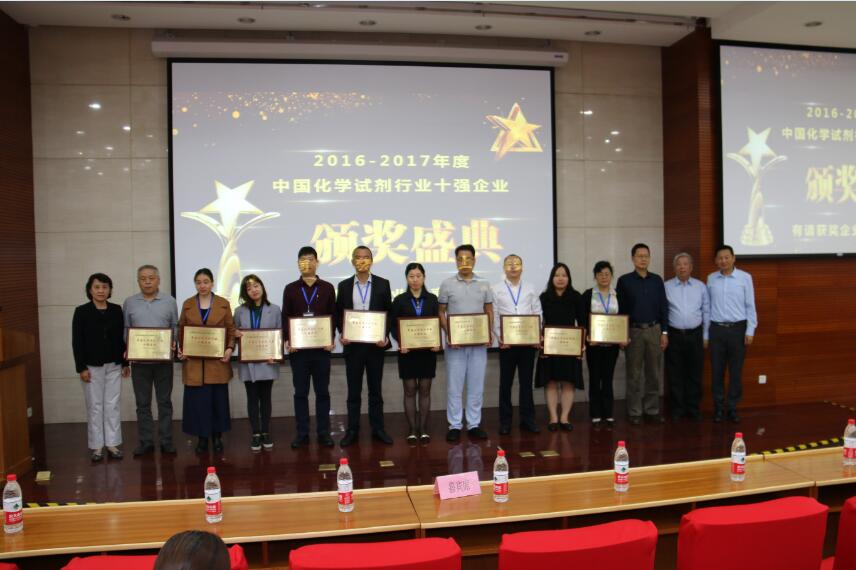 作为本次会议的重头戏之一,大会公布了由全国化学试剂信息总站评选的2016-2017年度中国化学试剂行业十强企业名单,这些企业代表着国内化学试剂行业的中坚力量。千亿球友会科技凭借近40年来在化学试剂领域的深厚耕耘及不断进取,再次跻身十强企业名单!