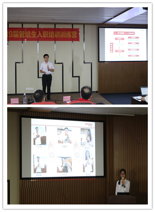 汇报总结环节是重点,管培生们表达和总结这段时间的学习收获、建议,确定下阶段的小目标。各位管培生以小组为单位,将他们在培训营中所学习到的知识和干货,通过PPT的方式呈现,注入自己的思考与感悟,提出问题及解决建议。不断在学习和实践中总结和反思,是公司对管培生的培养要求,同时也是他们成长的催化剂。